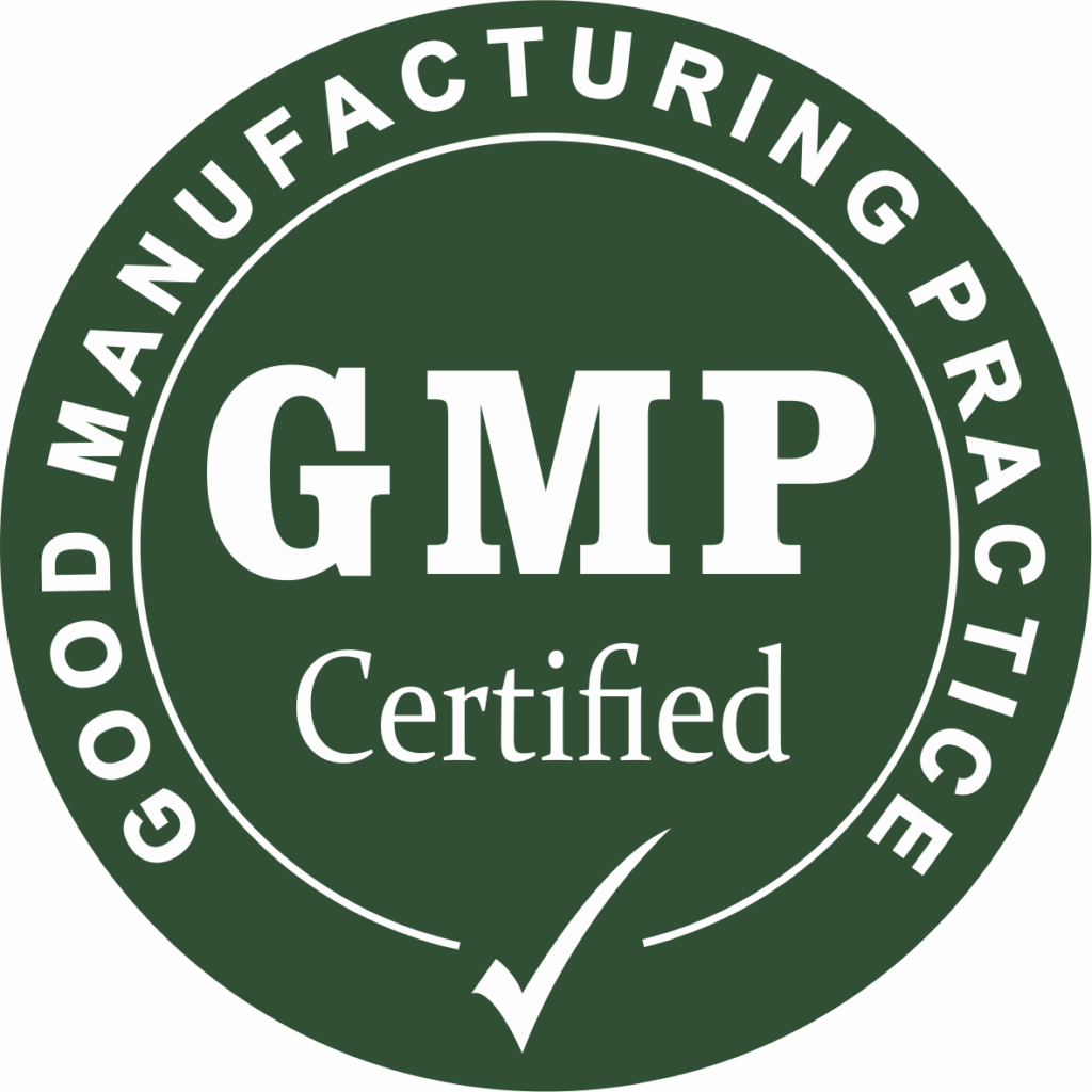 GMP - Praktika aktuale e mirë e prodhimit në prodhim, paketim, etiketim ose mbajtje të suplementeve dietike Kjo Çertifikatë është e zbatueshme në fushën e mëposhtme të aktivitetit të saj: “Projektim, prodhim dhe shitje të suplementeve ushqimore për njerëz dhe ushqim për kafshë (Suplemente ushqimore me Acid Humik; Suplement ushqimor për kafshë; Plehra organo-minerale). Tregti me lëndë të para dhe produkte përfundimtare për industrinë ushqimore dhe bujqësore.’’